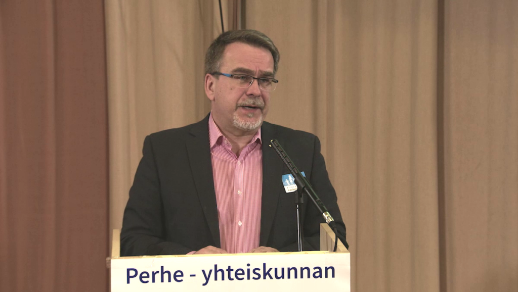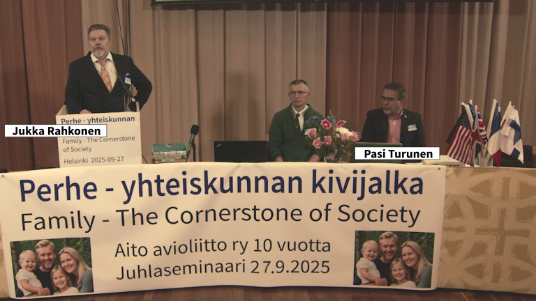 Kiitettyään yleisöä, luennoitsijoita ja tilaisuutta kuvannutta TV7:n henkilöitä, avauspuheenvuoro painotti tavallisen miehen ja naisen muodostaman perheen tärkeyttä koko suomalaiselle yhteiskunnalle ja sen säilymiselle.